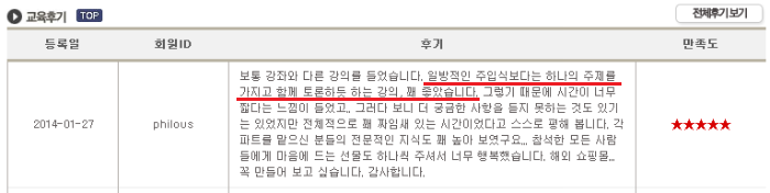 감사하게도 토크강의가 많은 도움이 되셨다는 교육후기를 올려주신 분이 계셔서 생생한 후기까지 살~짝 공유해 봅니다.^^