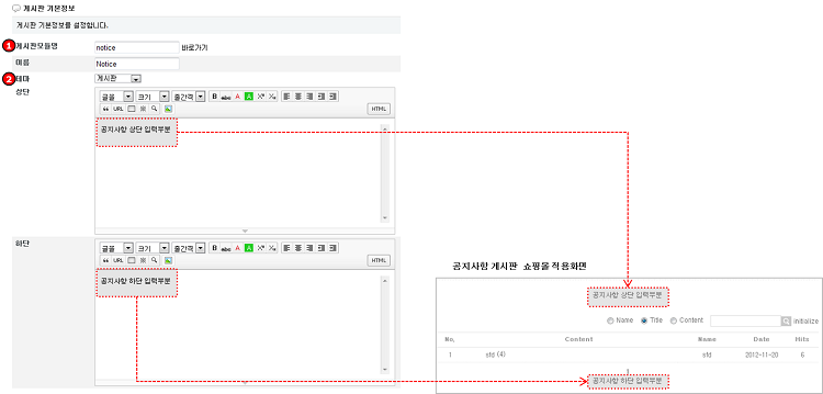 - ① 게시판모듈명 : 게시판 모듈명을 영어로 표기해 주세요(대소문자 구분)