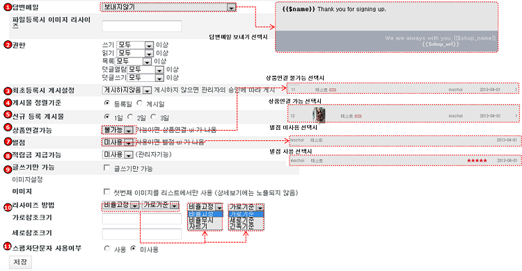 - 게시판 리스트에서 상품이미지를 리스트로 보여줄 것인지 아닌지 선택합니다. (리뷰게시판 내)
