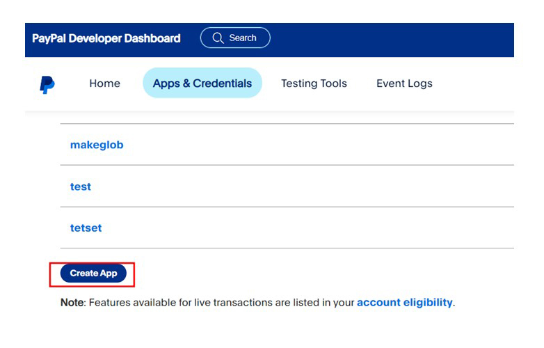 ※ Client_id / Secret 발급 방법 (페이팔 신규v2버전)